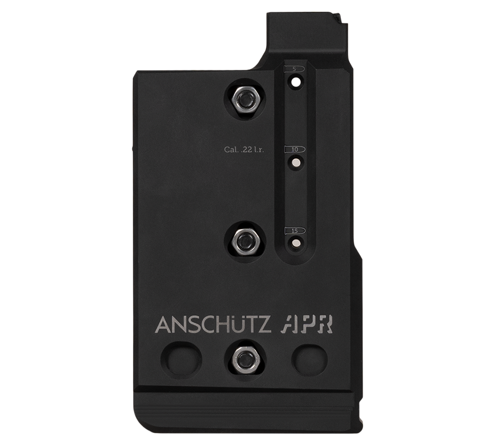 Das robuste Aluminium-Magazin im AICS-Style fasst bis zu 15 Patronen. Ein innovativer ANSCHÜTZ Full Mag Indicator (AFMI) am Magazinboden ragt bei voller Ladung leicht heraus und ermöglicht eine schnelle, intuitive Überprüfung – ideal für einen effizienten Magazinwechsel, besonders bei mehreren mitgeführten Magazinen. Die griffige Oberflächenstruktur des Magazinbodens sorgt zudem für eine sichere und präzise Handhabung in jeder Situation.